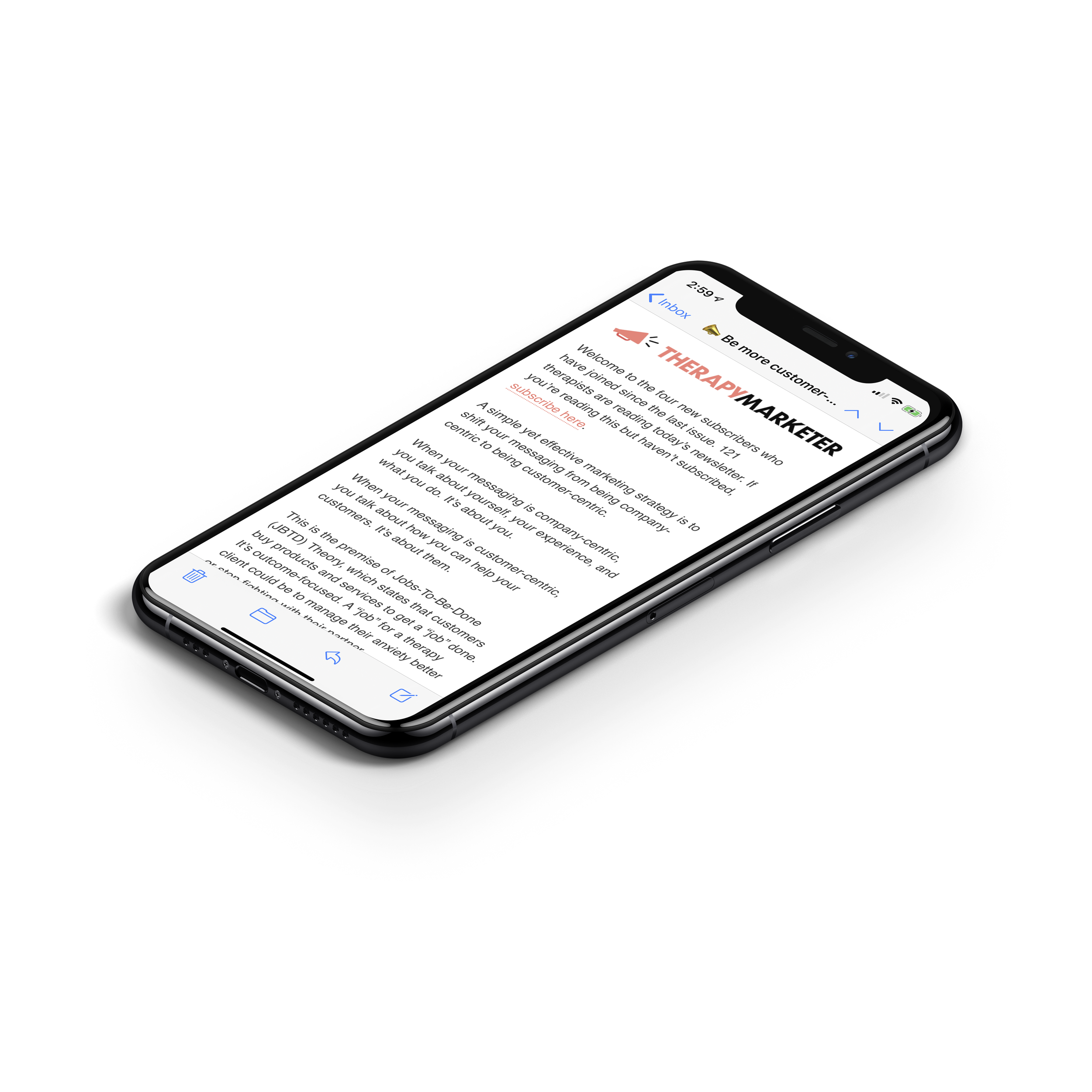 Get the weekly newsletter that helps therapists get better at marketing, for free. Always concise with actionable takeaways.
